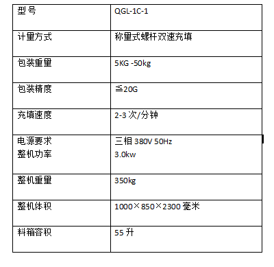 功能:该机与缝包机组配合可自动完成计量、夹袋、充填、封口、缝包、传送等工作。